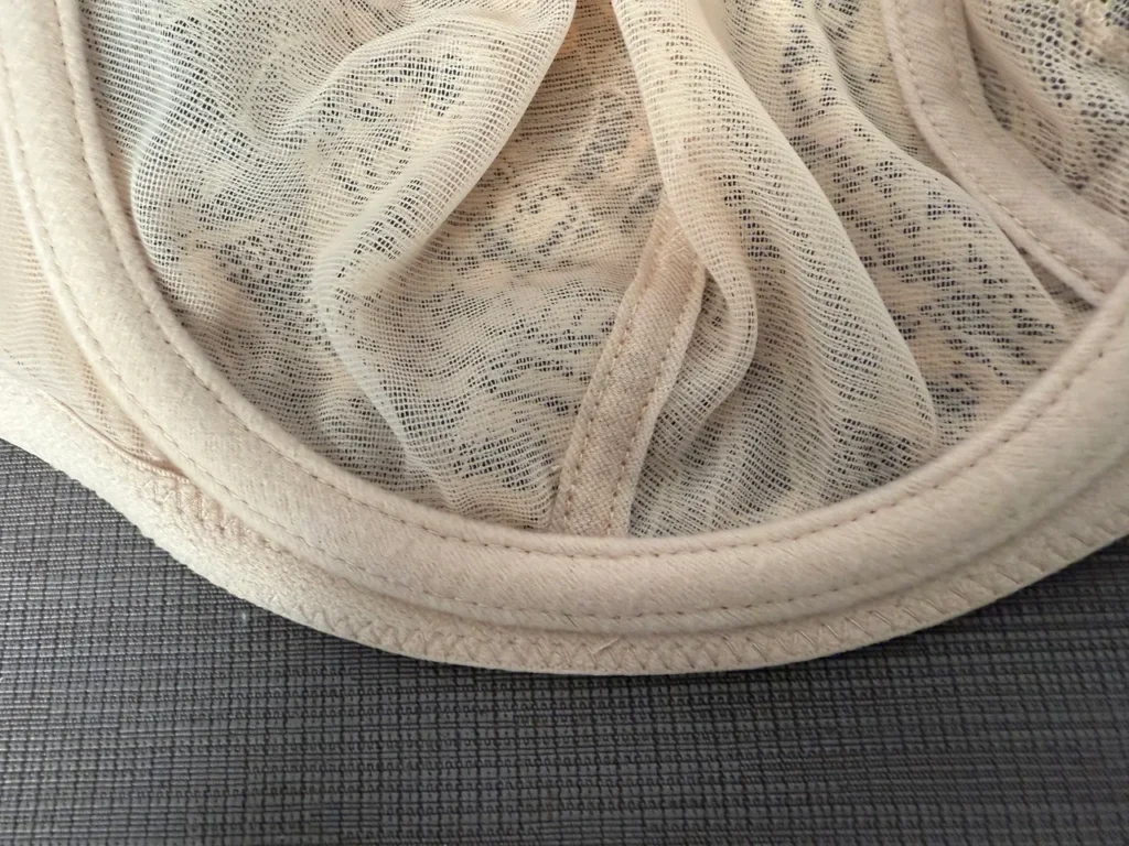 This Freja bra below is a full band, and you can see the elastic is continuous across the bottom edge. From the outside, this bra looks like a partial band, but it is a full-band bra. I achieve the minimalist look of a partial band bra by keeping the band as thin as possible. Thus, keeping the framework of a full-band bra intact.