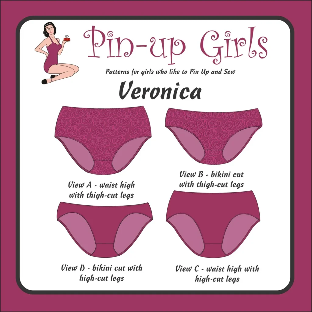 The Veronica Panty Basics Pattern covers the basic styles you will need for everyday wear. The Veronica Panty Pattern includes 4 views, with two height options (waist or hipster) and two leg options (thigh cut and high cut). You will be amazed at how good panties can feel when you make them yourself. Use the Make & Fit Panties book for ideas, such as how to add lace to this basic pattern. Hip sizes 32-54″ (81-137 cm) are included in the pattern.